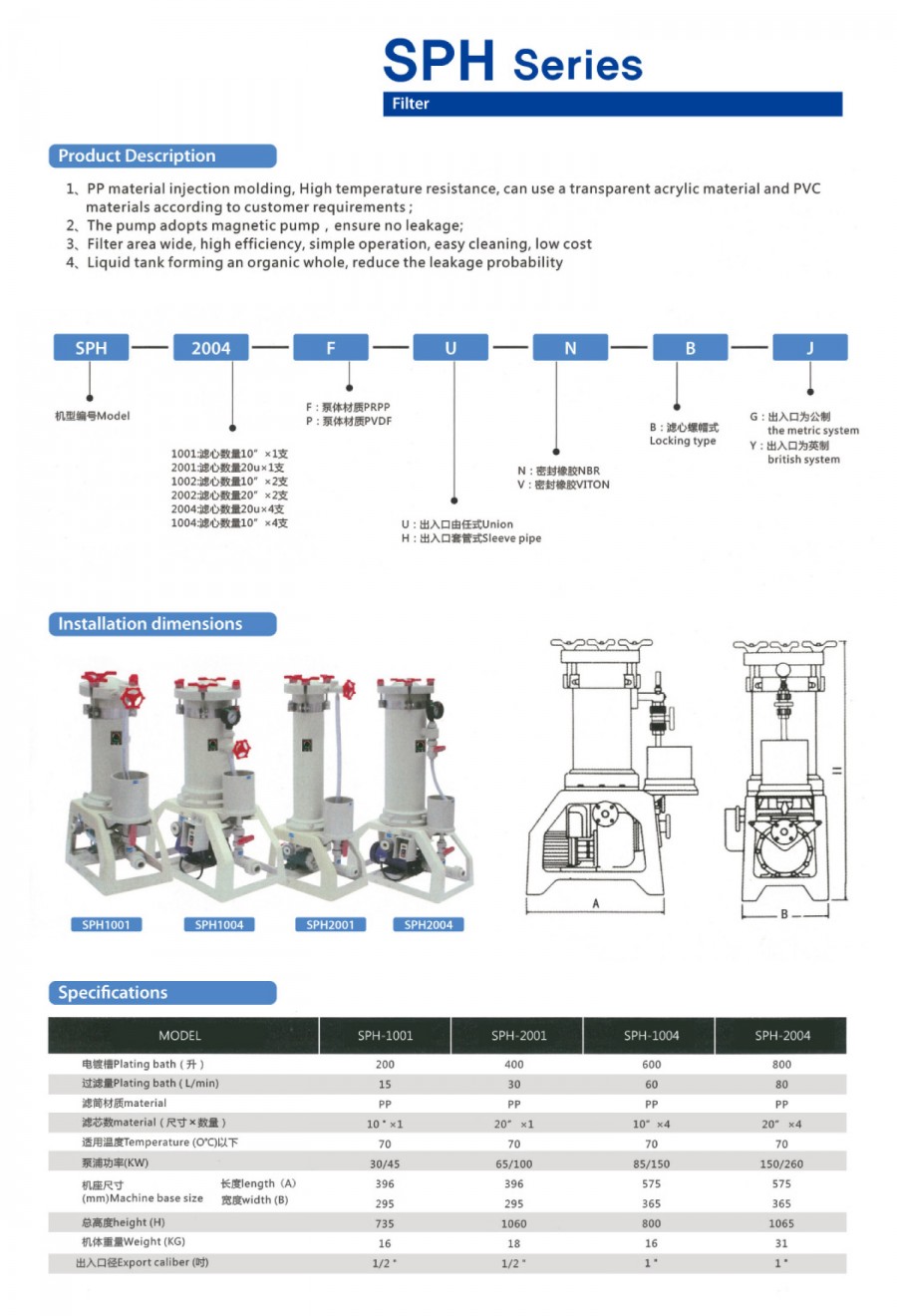 목록 FILTER - SPH Series chemical PP material injection molding, High temperature resistance, can use a transparent acrylic material and PVC materials according to customer requirements;The pump adopts magnetic pump, ensure no leakage; 첨부파일 연우마그네크-1414.jpg Chemical pump, Chemical Filter.pdf 본문 목록
